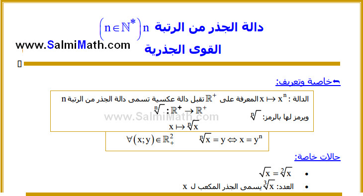 ملخص درس دالة الجذر من الرتبة N الجذر النوني مع تمارين وحلول عالم الرياضيات