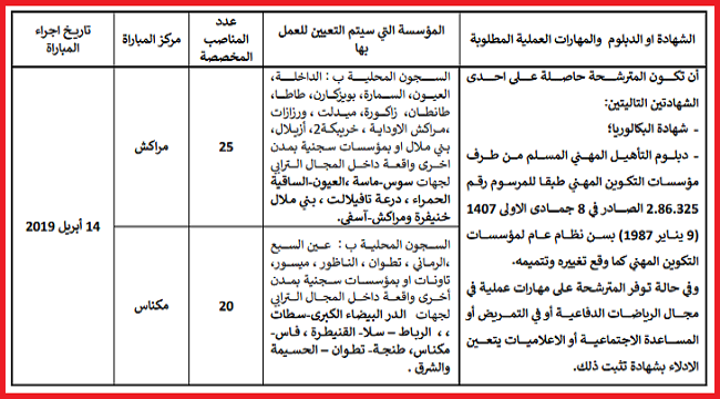 للحاصلين على دبلوم التأهيل المهني في الكهرباء الترصيص الصباغة أو شهادة البكالوريا شروط مباراة إدارة السجون 2019 للذكور والإناث خدمتي موقع البحث عن الوظيفة بالمغرب Khdamti L Alwadifa