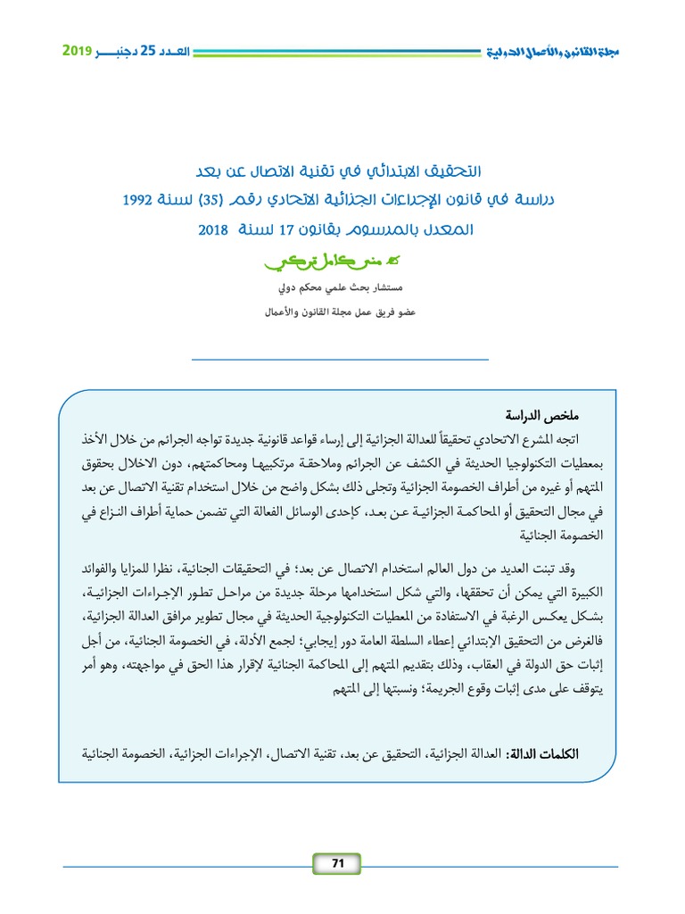 التحقيق الجنائي بتقنية الاتصال عن بعد دكتورة منى كامل تركي مجلة القانون والأعمال