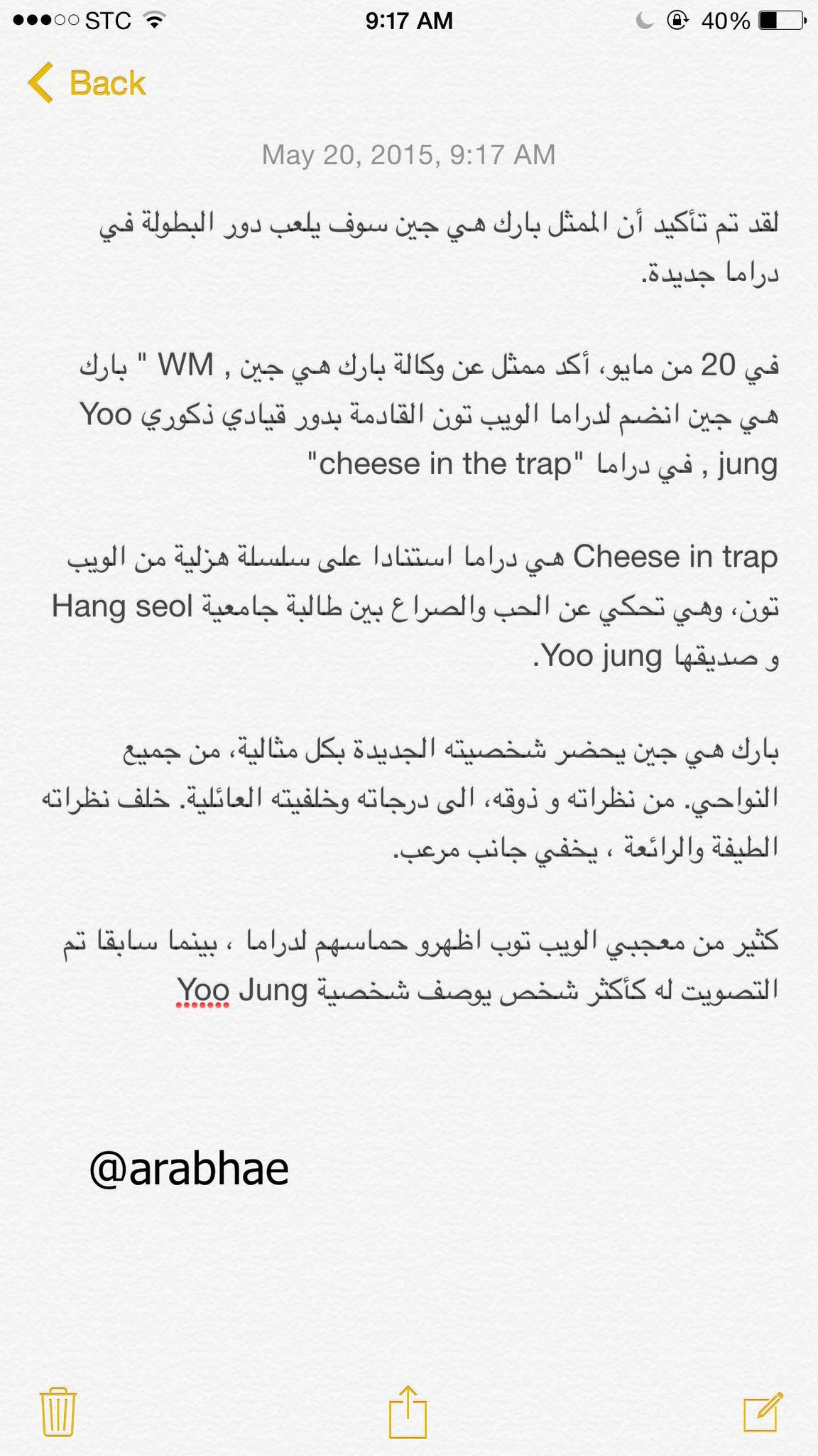 Arab Park Hae Jin On Twitter خبر بارك هاي جين يؤكد دور بطولته في دراما الويب التون القادمة Cheese In The Trap Http T Co 9rchsiovcb