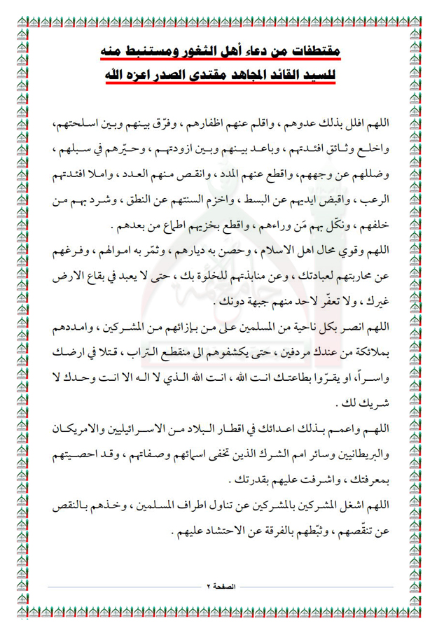مقتطفات من دعاء أهل الثغور ومستنبط منه للسيد القائد مقتدى الصدر منضد الاثنين 25 8 2014 منتدى جامع الائمة الثقافي