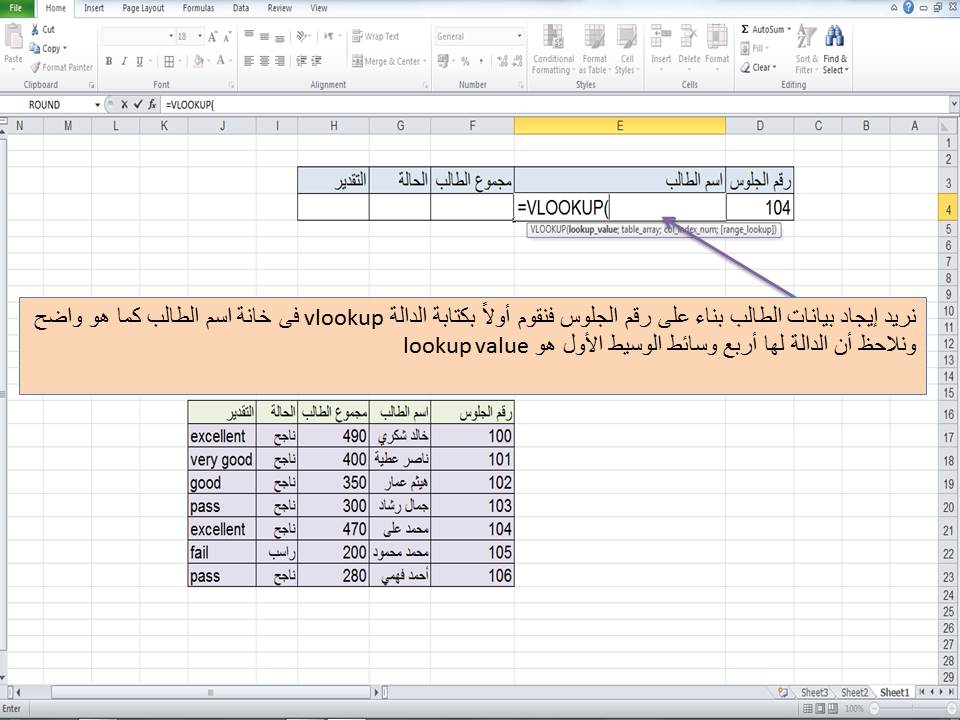 البحث العمودي بالجدول وإستخراج البيانات المقابلة لقيمة البحث الدالة Vlookup اتعلم اونلاين