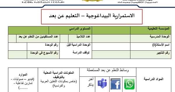 نموذج وثيقة الاستمرارية البيداغوجية التعليم عن بعد موقع الأساتذة والتلاميذ للتعليم عن بعد