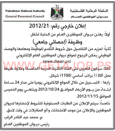 احصائي جامعي ديوان الموظفين العام غزة