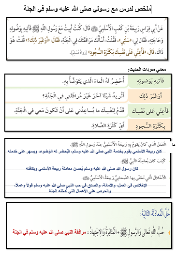 ملخص مع رسولي صلى الله عليه وسلم في الجنة للصف الخامس في مادة التربية الاسلامية